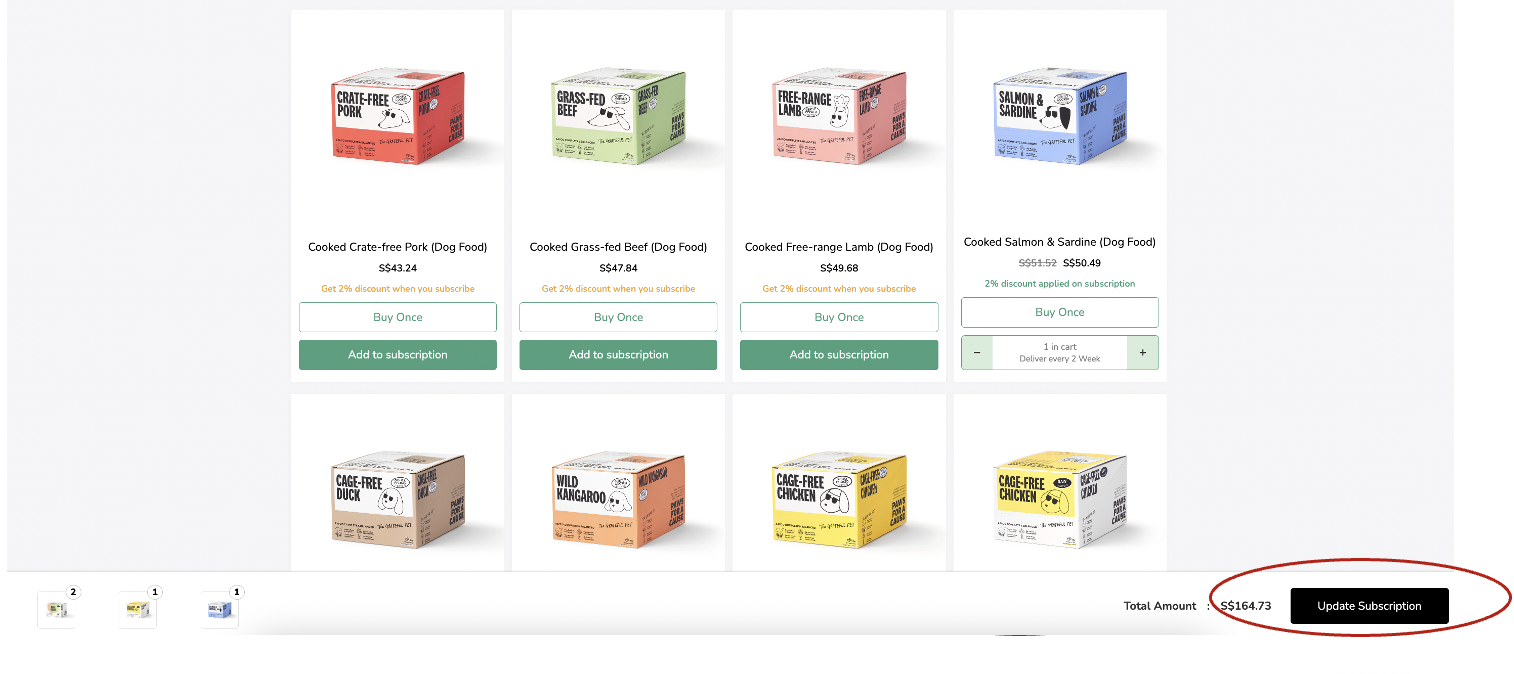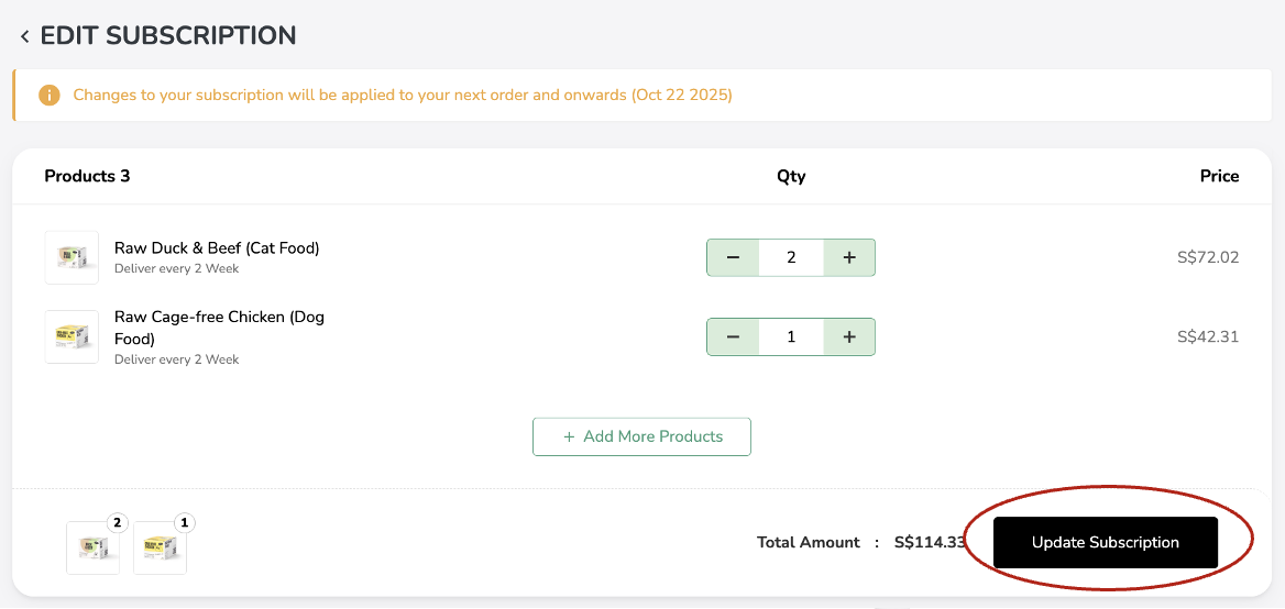 At Step 4, click on ‘+Add More Products’ and add your desired items before clicking on ‘Update Subscription’ to finalise your changes.