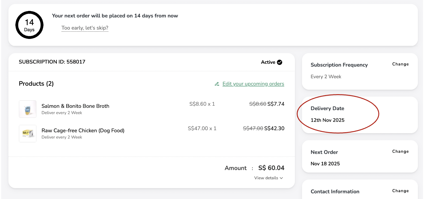 Step 3: You should see your active subscription. Click on ‘Manage your subscription’. Step 4: Your delivery date will appear under ‘Delivery Date’